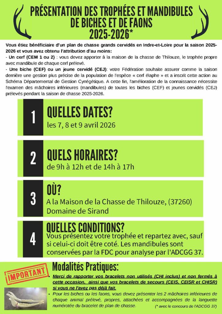 PRÉSENTATION DES TROPHÉES ET MANDIBULES DE BICHES ET DE FAONS 2025-2026*