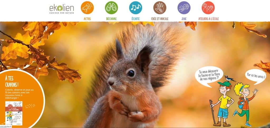Connaissez vous Ekolien? c’est  un site ludo-pédagogique adressé aux 4-12 ans pour se reconnecter à la nature, découvrir la faune et la flore de nos régions et profiter de moments de partage en famille : jeux, loisirs créatifs, docus interactifs, quiz, podcasts…(outil d’Éducation à la nature).