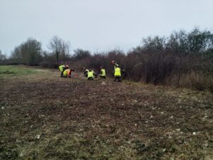 Chantier école : création du sentier pédagogique des grandes Tenières avec l'école de Vendôme. Une vingtaine d'élèves ont participé à ses travaux de déboisement, débroussaillage, création de haie "benjes", retrait de bâches de plantation non dégradable sur environ 2 km.